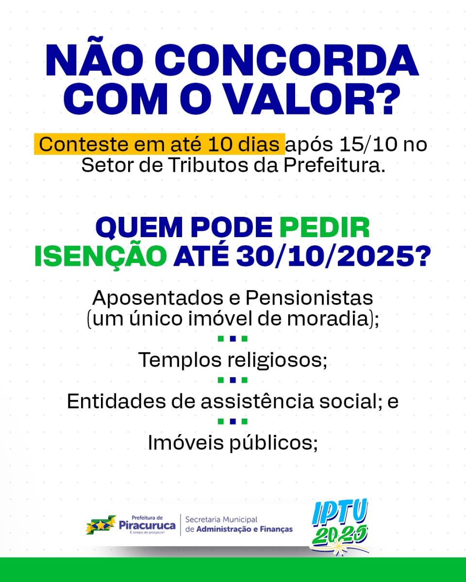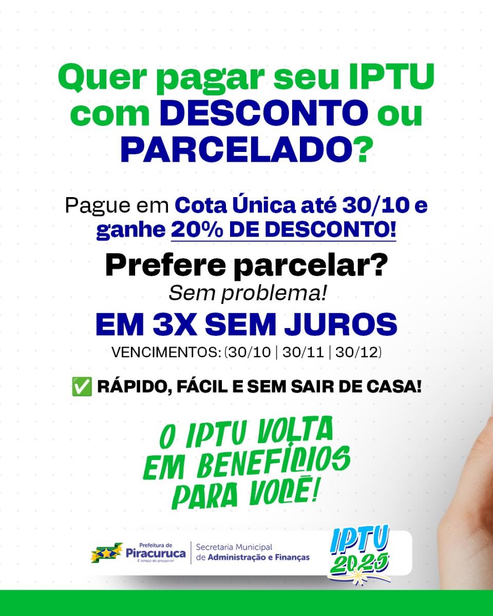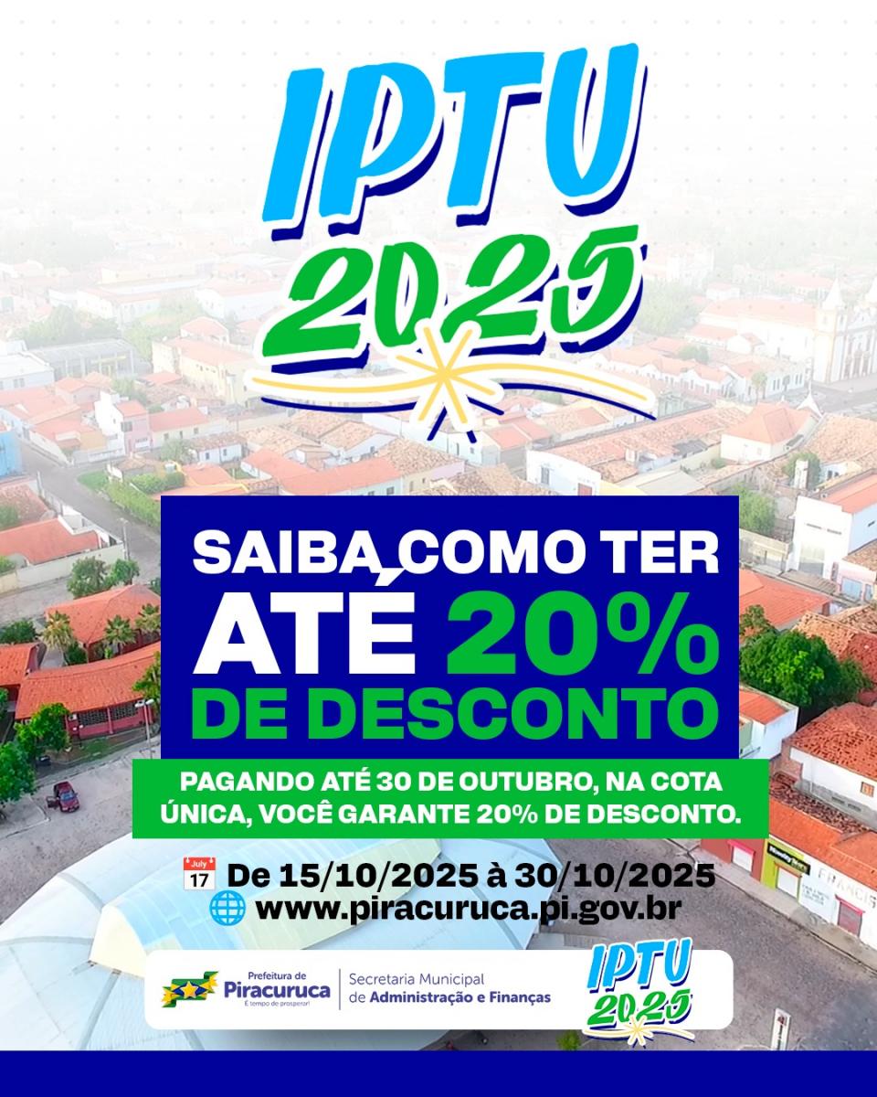 IPTU 2025 - Pagando até dia 30/10 você garante desconto de 20% na cota única